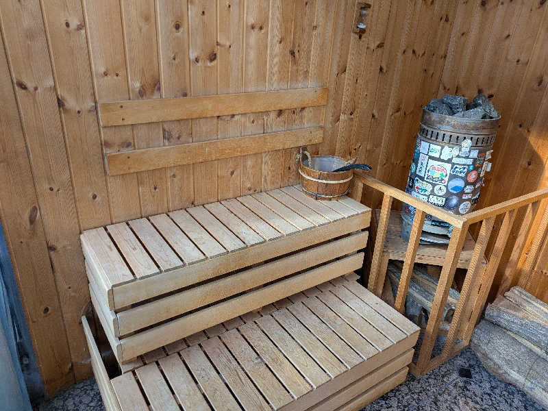 サウナは高温、低温の2種類あり、水風呂は目の前の神導線。