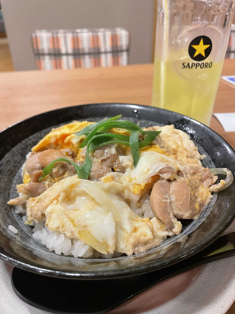 塩サウナはまずまずでしたね。セルフロウリュしたかった。水風呂も冷たい。外にもある。外気浴スペースが充実し過ぎている。クーラーボックスで飲み物が冷やせる。などなど、サウナーが、ほしいものが分かってらっしゃる。ありがたやー。満足度高め。ドライブ疲れも癒されました。サ飯にはつくば鷄の親子丼、オロポ。早足で食べちゃったけど美味しかった。味わえば良かったよ。