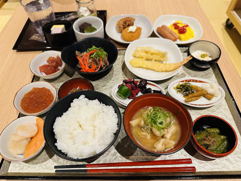今日の予定はゆったりスタートだから、サウナ入って、お風呂入って、マッサージチェアで更に整えられて、大人気の朝食ブュッフェへ。