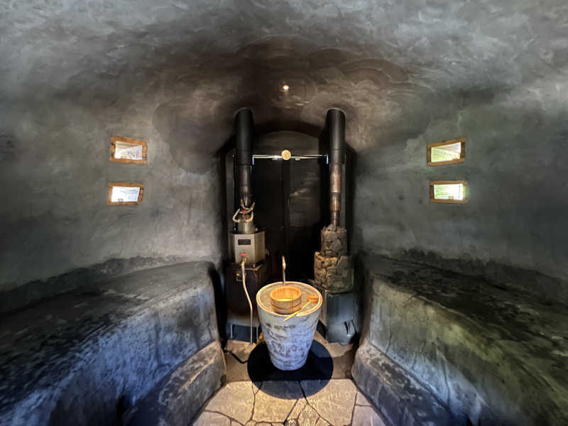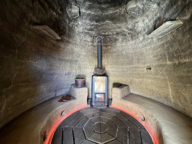 THE ZENは入った瞬間の独特な世界観に圧倒、薪の香りとセルフロウリュの月桃の香りが広がって至福、薪ストーブ✖️アースバックの効果なのか丸い熱だけど発汗量が凄まじい🧘