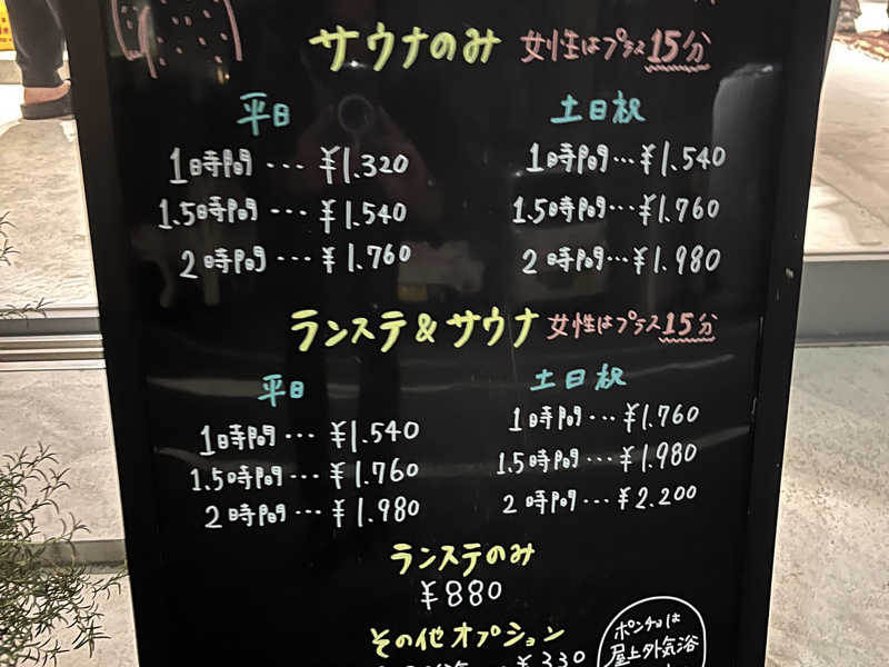1セット目の後水風呂ダイブ、椅子で外気浴、その後寝湯で気がついたら終電時間を過ぎておりました。
