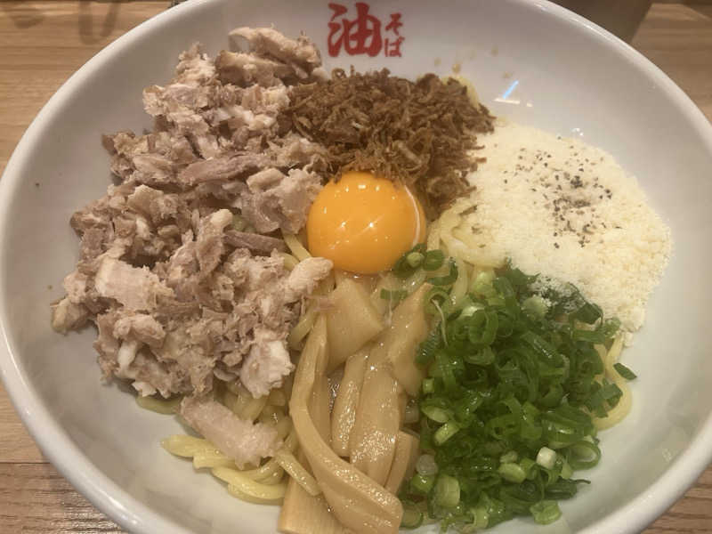 油そばは初めてでどのチョイスがいいのかわからなかったので、全部入っているやつにしちゃいました…💦 パルメザンはなくても良かったかも。 でもココ美味しいですね。