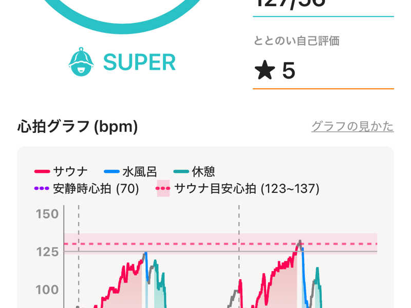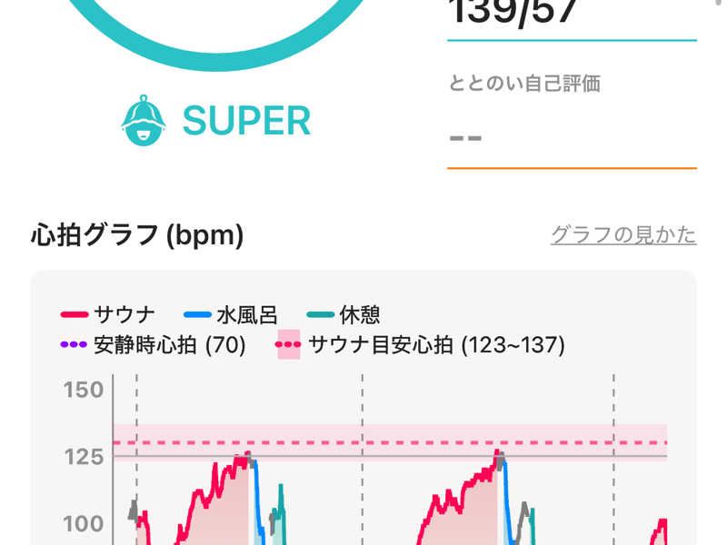 一言:休日夕方はやっぱ混むなぁ。最初下段でゆっくり体を高温に慣らし、2セット目以降は2段目に座りしっかり温めた。心なしか、体への負担が軽い。
