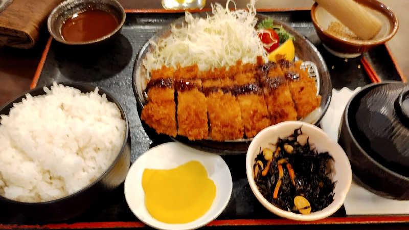日曜まで値段下げて販売している厚切りとんカツ定食ご飯大盛りで頂きました😁