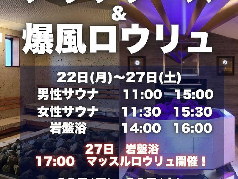 オートロウリュは毎時00分:ストロング/30分:マイルド。