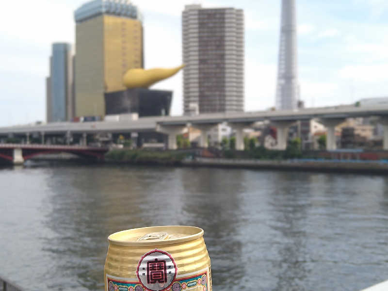 吾妻橋のたもとには[角打ち]が出来る四方酒店(よもさけてん)がある。写真③
