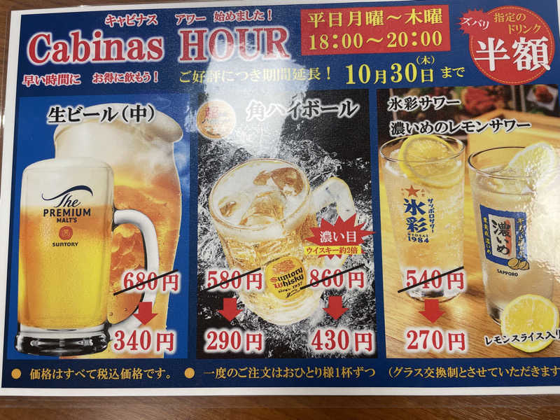 ビール半額のキャンペーンがまだやっていることを知らず、20時までということで
