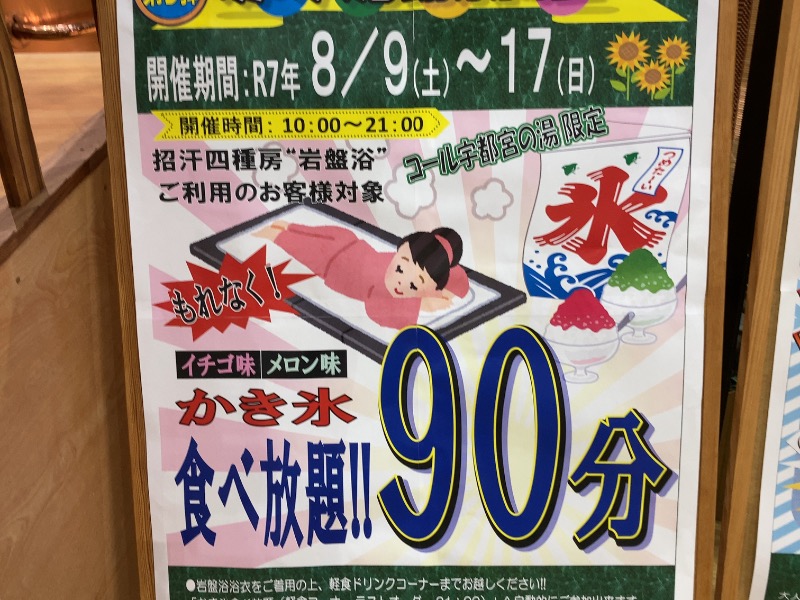 お盆期間中は岩盤浴利用でかき氷が食べ放題となっていて大変お得です🍧