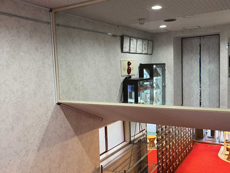 赤の絨毯が時代を感じるがあえてこれからのサウナをワクワクさせてくれます。初めての施設へ行くワクワク感をより一層引き立ててくれますね😌