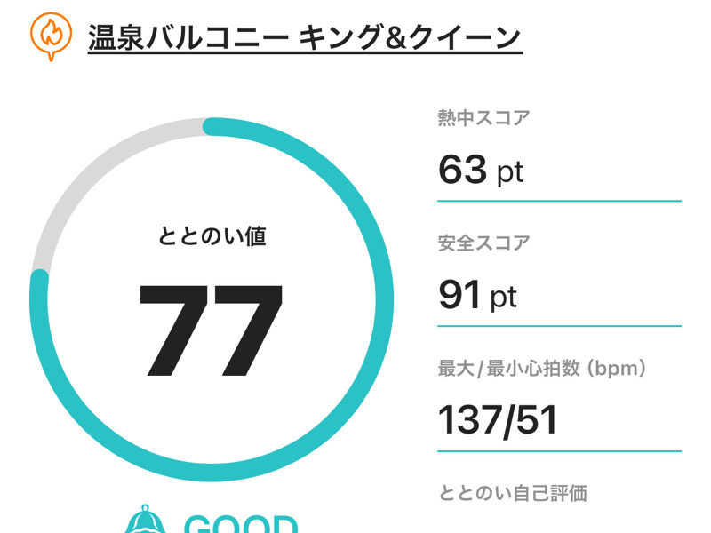 人数が多い分、開閉も多いのでサ室内の温度が低く物足りなかったですが、スチームサウナは空いていてオートロウリュが発動した時は高温サウナ越えでした。