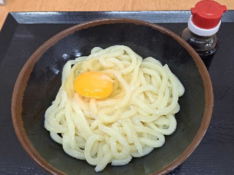チェックアウトして、釜玉うどんに半熟たまご天ととり天を😋