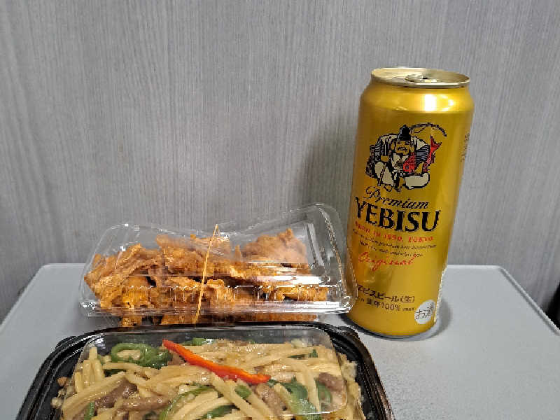 街の飲食店も楽しみたかったですが、駅への道中での中華料理屋でテイクアウト品の青椒肉絲、鶏皮を買って車内バーで撤収です💨