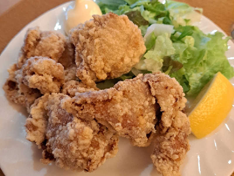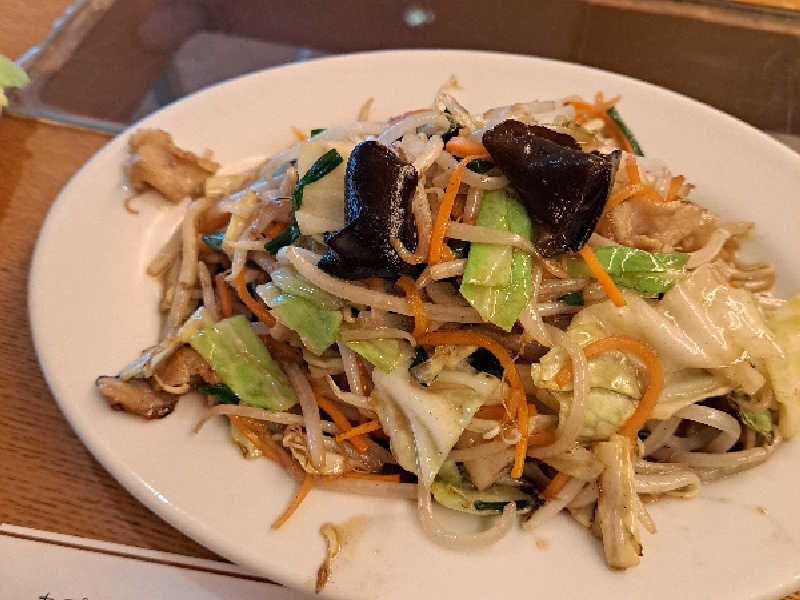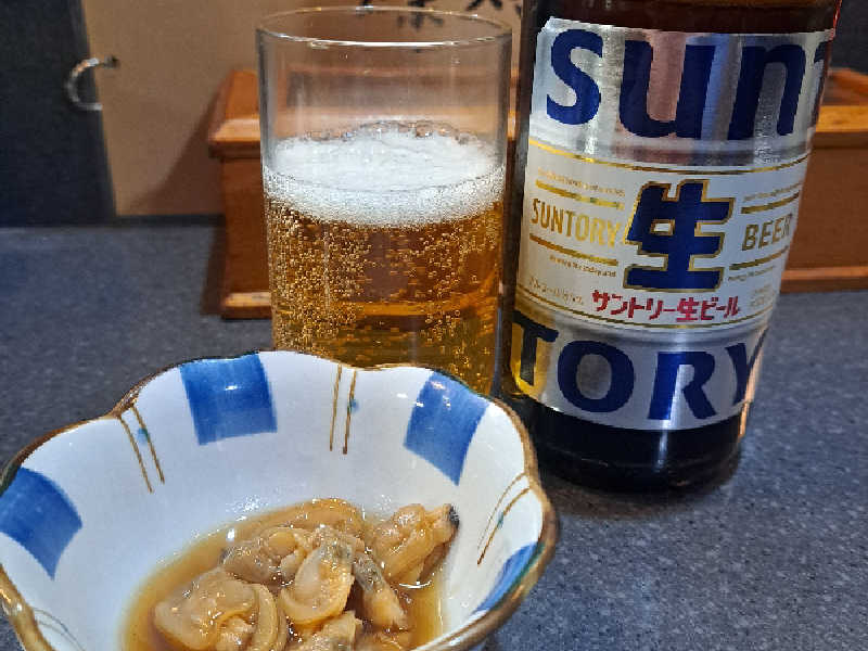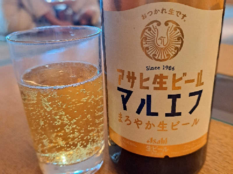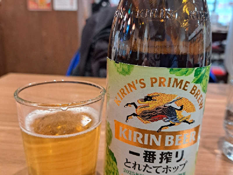あがって、瓶ビールマルエフに肉野菜炒めと若鶏の唐揚げを美味しく頂きました😋