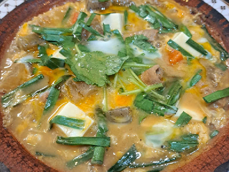 少し濃いめのタレにたまごを混ぜたところに鯛を投入し、白ご飯へ😋