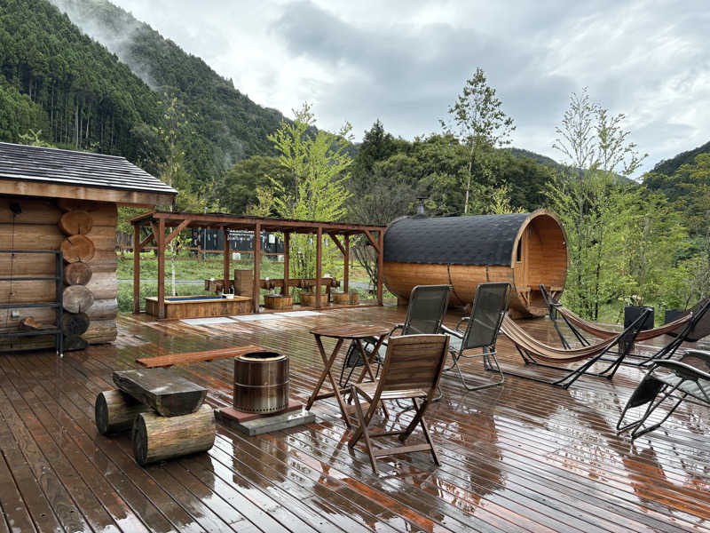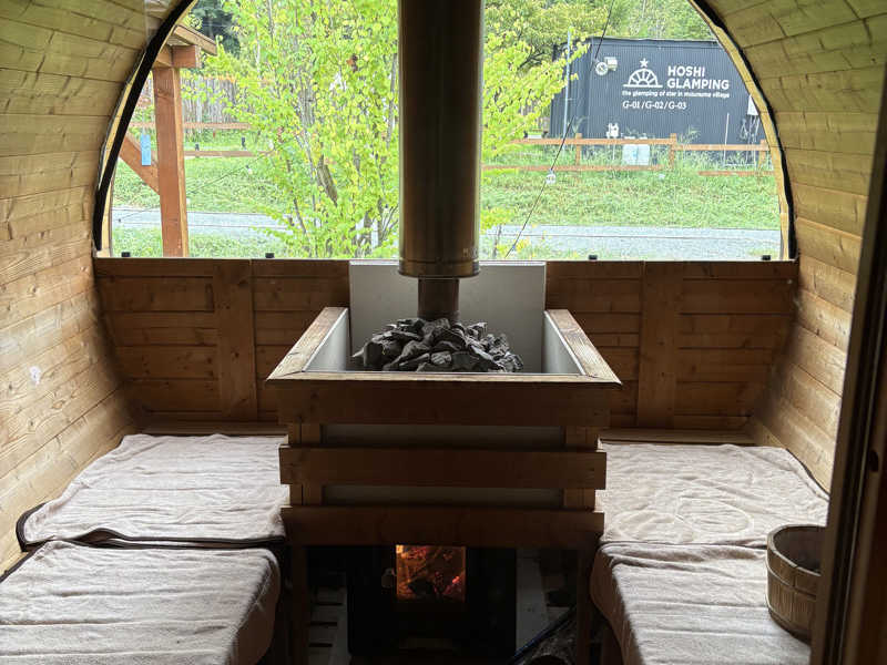 露天エリアにイスが6つ。ベンチ1つ。フルフラット5つ。星空をみて整う。気がつくと物凄いあまみが出来ていた。