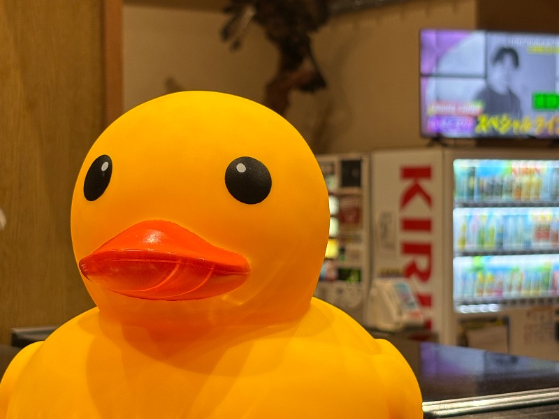 今日も逢えなかった『夕焼け爺』に想いを馳せて今日も会えたレジェンドから憐れみのお裾分けで『唐揚券』をGET❗️新登場の巨大な『アヒル隊長』と『鷹の剥製』のコラボも良いね👍