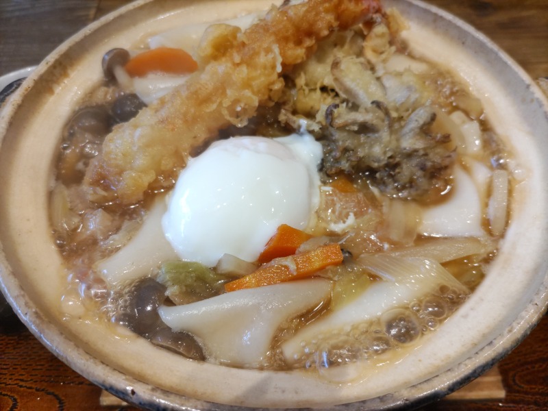 ひもかわうどんの鍋焼き版。