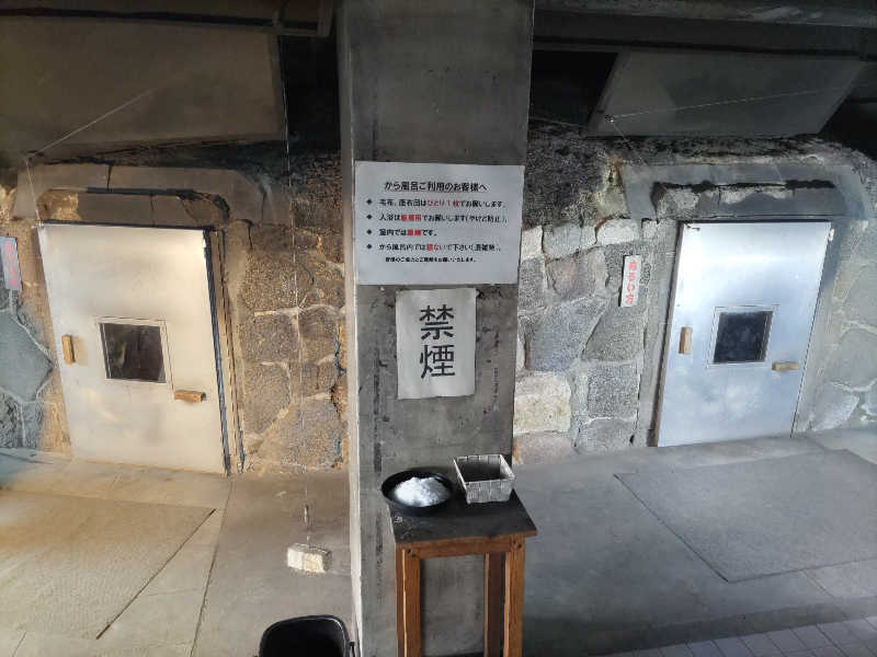 コチラ1300年前からある日本古来のサウナらしいですね。外観もいぶし銀。