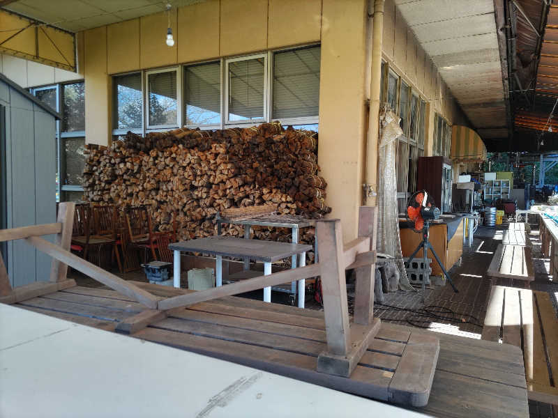 露天スペースはナイス景観。目の前の紅葉を見ながら💤。お風呂を沸かす薪の香りもほんのり。