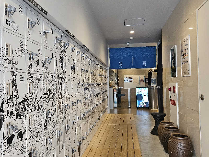 受付でロッカー番号に応じ青暖簾、赤暖簾のどちらの更衣室を使うか教えてもらいます。