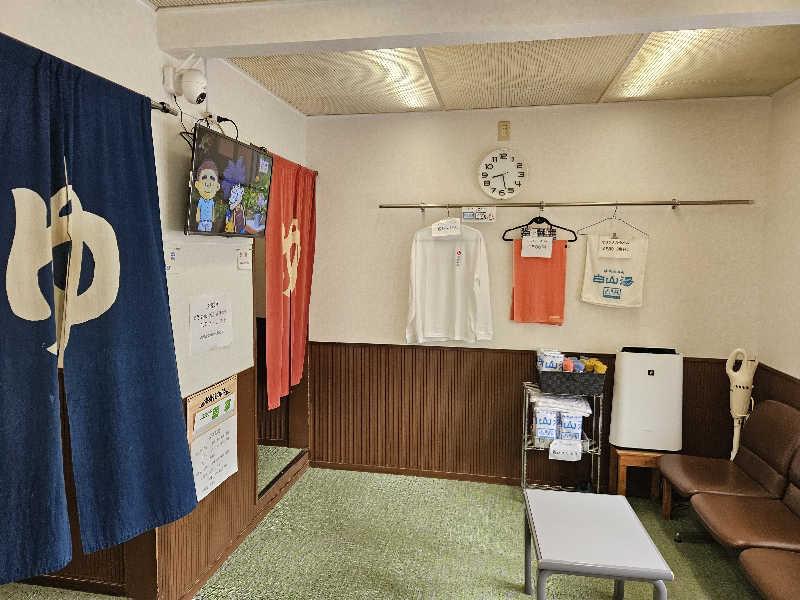 脱衣場にも新たに椅子が設置されています。こちらもスペースの関係で混雑時は着替えの方と重なるとちょっと落ち着かない感じです。
