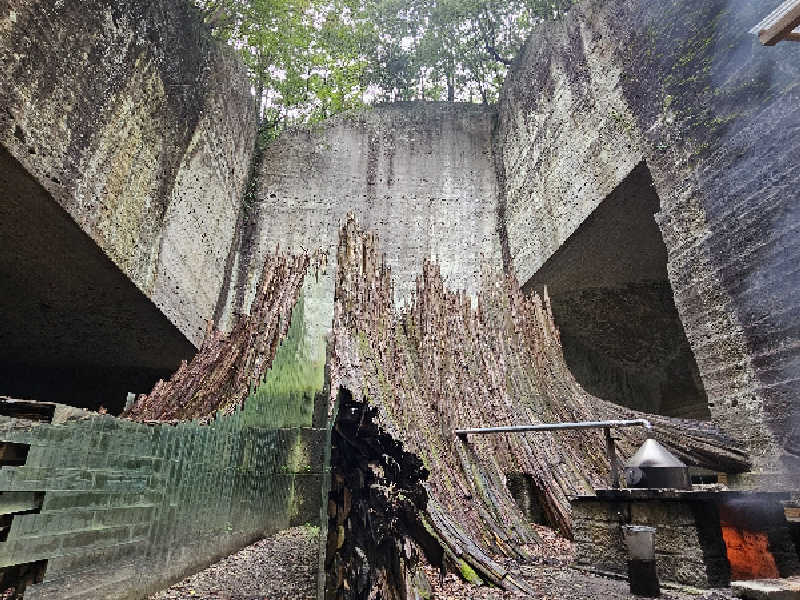 元気炉の名のとおり、大きな窯に薬草を入れグツグツとお湯を沸かし、その蒸気がパイプで作品の内部に送り込まれます。