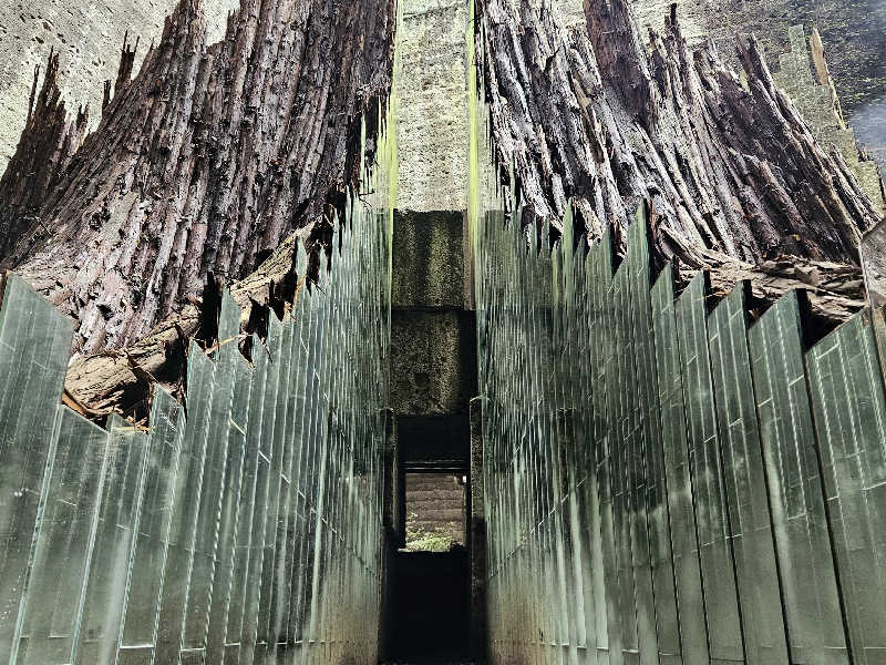 大谷岩を切り出した採石場跡地に巨木のようなアート作品が厳かに佇む様に思わず息をのみます。