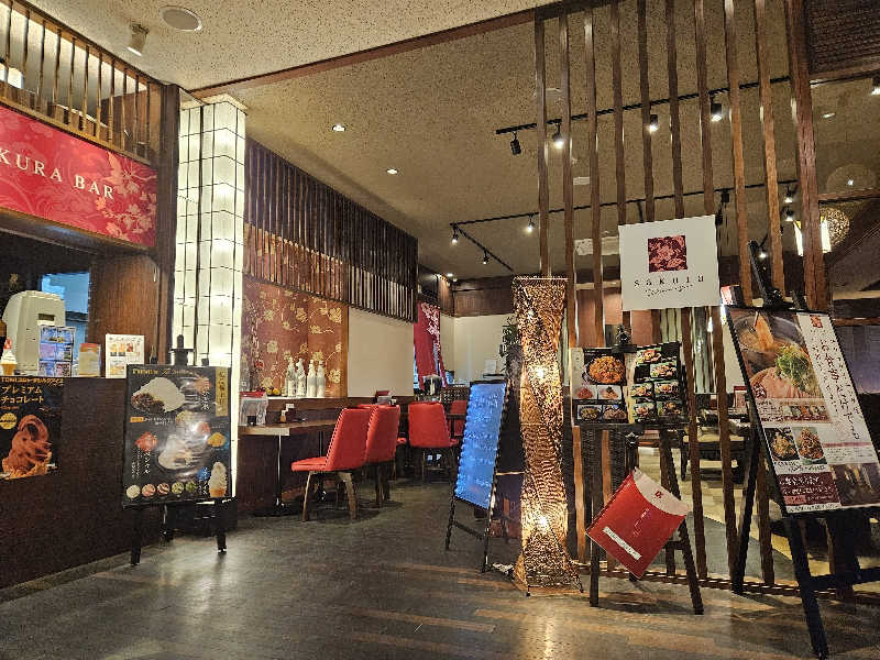 内湯は替わり湯の薬湯、ジェット湯、絹湯、ラジウムイオン鉱泉、天然温泉、座り湯。