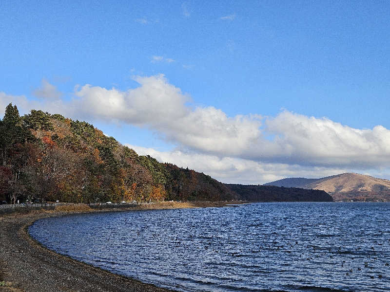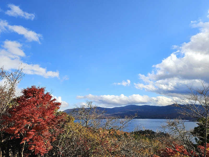 はなれの湯から紅葉を借景に望む山中湖には心が洗われる感じがしました。