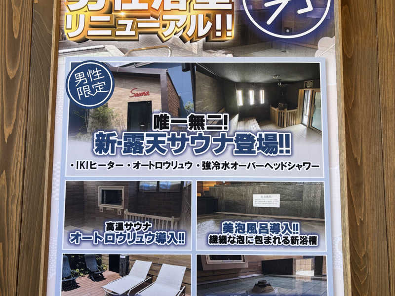 ホームページでは露天エリアに洞窟風呂があったようでしたがリニューアル後にサウナ室が新設されたということだったので早速1セット目は露天サウナを頂きました。