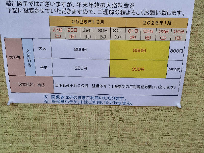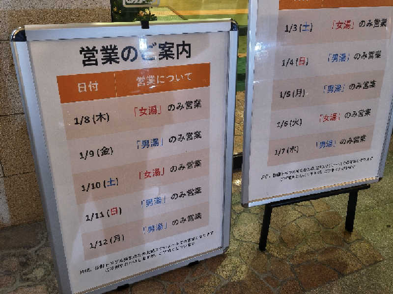 昨日ポイント2倍デーでひうちの湯を訪れると男湯休業中!