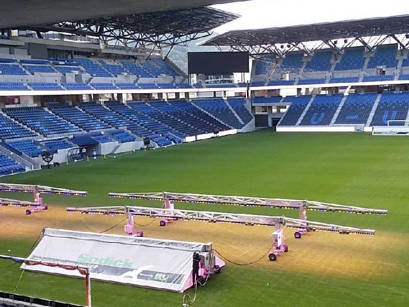 途中、スタジアムを一望することができました。日曜日には現在J2で2位の長崎と首位の水戸が直接対決する大一番を迎える、ということで、準備が着々とされていました。サッカーもバスケもここに見にきたことはありませんが、コンパクトな作りで客席が試合場に近く、臨場感を感じさせるスタジアムだなぁと思いました。いつか観戦したいものです。