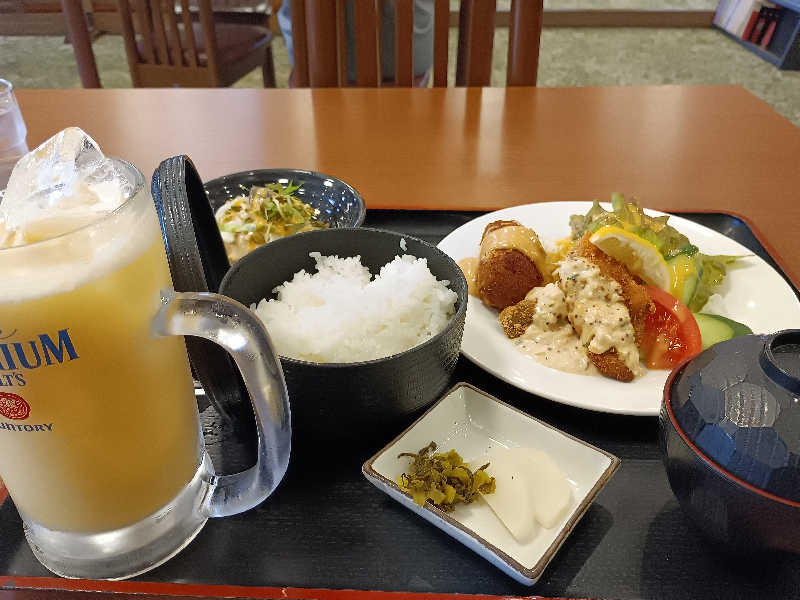 さすが我が長崎の県庁所在地、平日の昼間というのにけっこう客がいる。メイン、ミスト、メインと3回サウナに入る。メインのマットがふかふかになっていたのは高得点!外の風呂に出るとさすがに寒い!でも、景色がいいなぁ。天拝の郷みたいにあそこは何、あちらに見えるのは何、という案内板があると嬉しい😃また、ここのミストサウナはなかなか雰囲気がよい。温度がちと低いが、立ち上がるとアチアチになる。水風呂も16.9度となかなかのヒエヒエ。満足してレストランへ。