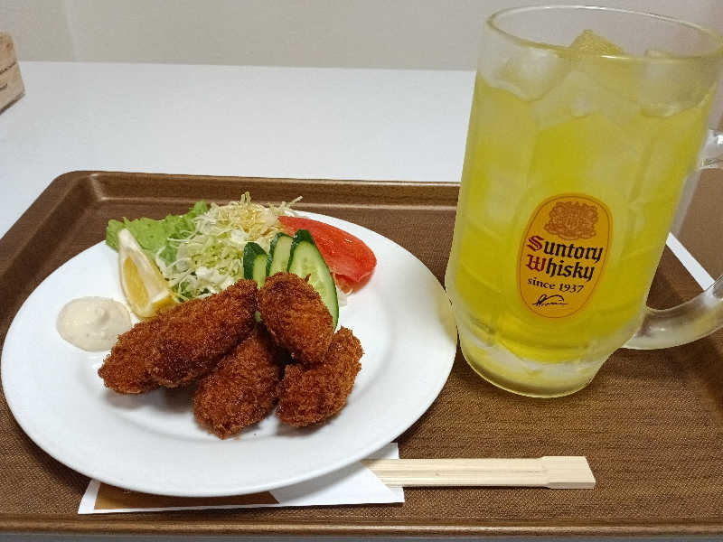 再びレストランに上がり、気になっていた肉豆腐を注文……も、品切れとのこと。前回はサンランチが品切れでした😭最近、客数も減っているし、食材が余らないように少なめにしているようです。くくく💧仕方なく牡蠣フライとオロポを注文。まぁホクホクしてジューシー、おいしかったです。