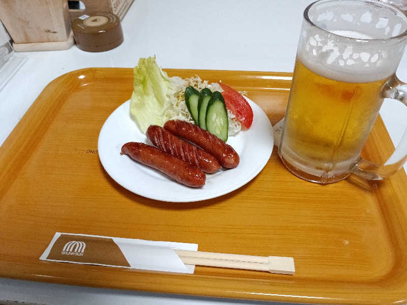 小腹が減っていたので、フランクフルトと生ビール。まぁまぁの味かな。薬味にマヨネーズかマスタードがほしかったな。のんびりしてると1時半近くになったので再び浴場へ。