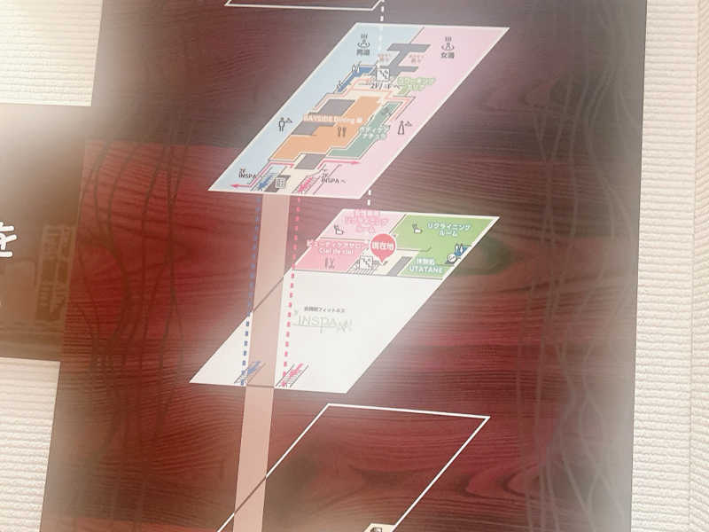 岩盤浴のととのうスペース?ベンチスペース?の壁にはトリックアートが👀