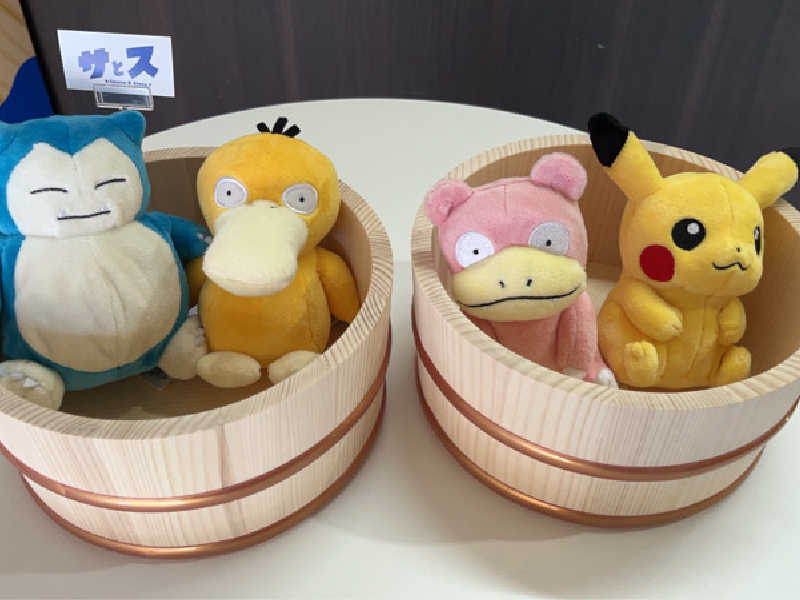 病み上がりのリハビリサウナ。炭酸泉と薬湯をまったり味わってからサウナ室へ。サウナマットはモンスターボールに変わっていました。