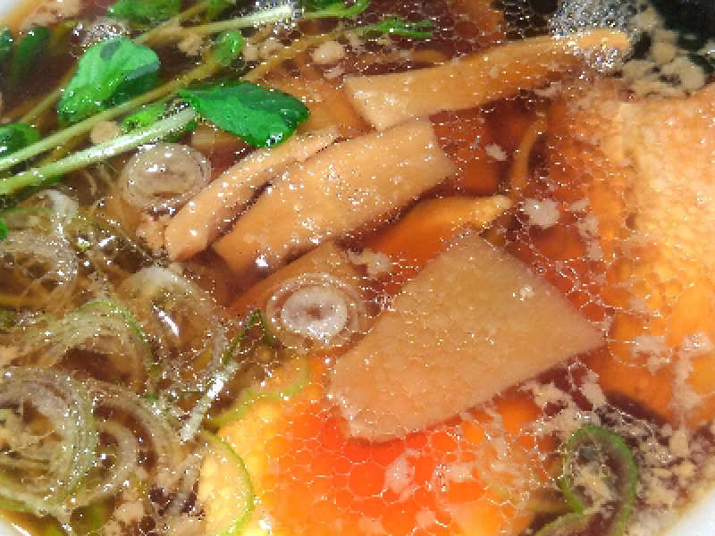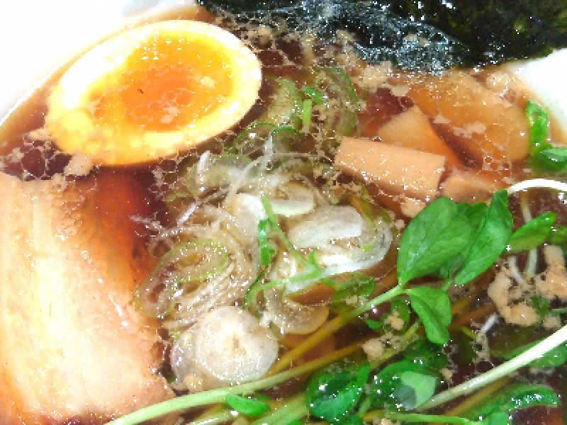 夏野菜冷やし中華そば、鶏はつ、芝海老の唐揚げ