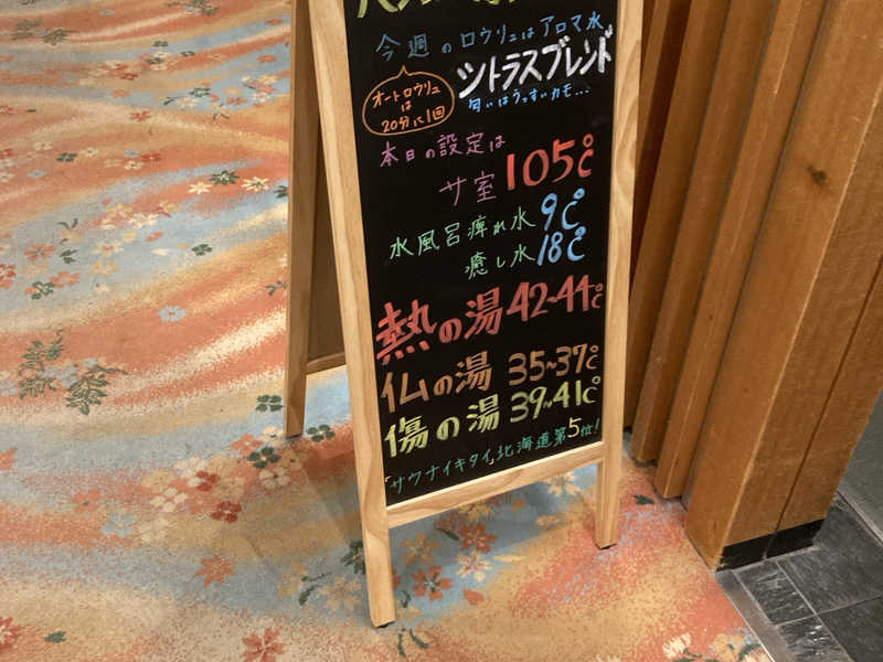 サ道のあの曲とか、ゆったり目のBGMが心地よく流れながらも、温度はなかなか暴力的な熱さ。床もあちあち(たぶん足裏そのうち皮剥けるw)