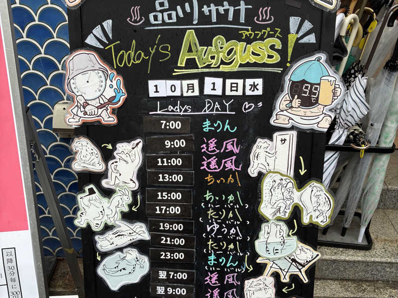 アカスリサービスのおかげで、サウナもさほど混まず、女性側のロウリュサウナではソロのタイミングもあり2段目に座りセルフロウリュもさせて頂きました。