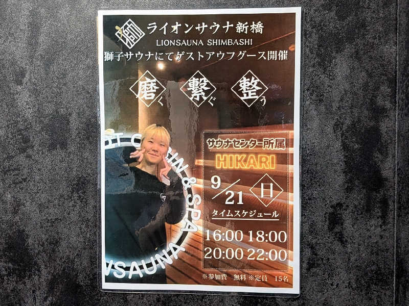 ここ最近ゲスト熱波師さんの傾向が井上さんを除くと、アウフスタイルの女性熱波師さんが多くなっていたので、今回のような熱波スタイルの方であったり、また男性熱波師さん(熱波系·アウフ系関わらず)とかも今後は良いかなと(ゲスト熱波師さんの開催頻度を増やしてほしいという意味では無いです)