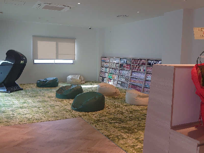 2階を利用するには一旦 シューズロッカーの鍵は預けてサウナ利用のリストバンドとは別の白いリストバンドを付けてもらい 帰りに受付で鍵と交換します。