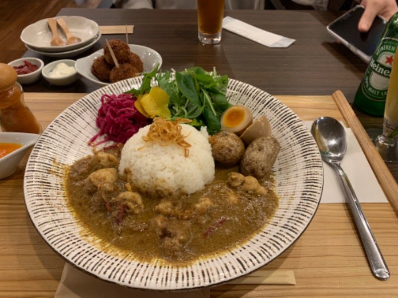 お風呂上がりに施設内のごはんやさんでスパイスカレーとハイネケンをキメさせてもろたんだが、これまたすごい。スパイスカレーがとんでもなくおいしい。高円寺とか下北とかで店出しても余裕で人気店になれると思う。ちょっと忘れられない。えーんまた食べたい🥹