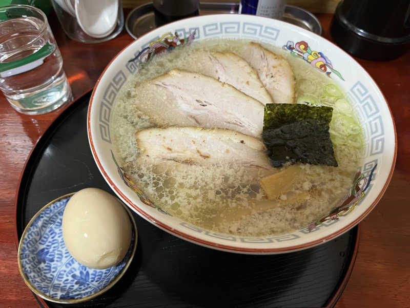 朝ラー:鶏料理慶 少な麺(しじみラーメン)味玉