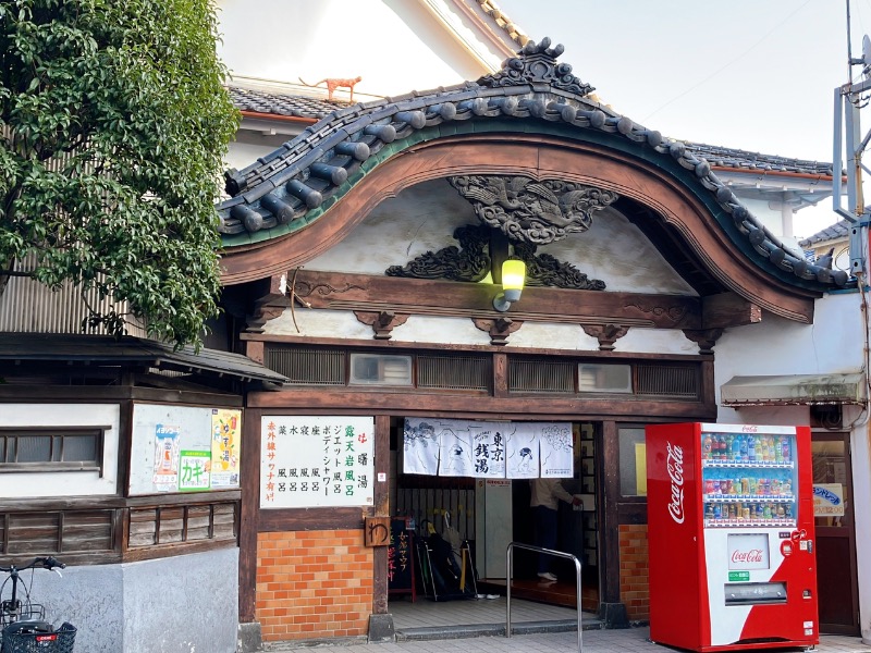 食堂の奥をつぶした喫煙所で一服して越谷を後にし、北千住駅まで戻って東京型銭湯を3ハシゴする。まずは大和湯へ、ここは割と最近来たばかり。厳かな外観から中はリニューアルされていつ来てもきれいだ。どぼっと束で流れ落ちる立ちシャワーの水圧が気持ちいい。