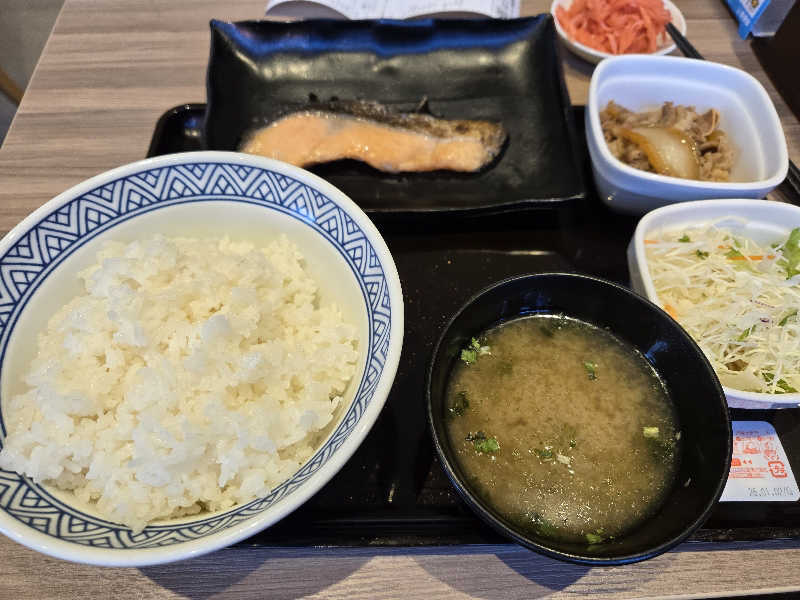 帰りに息子と相方の分の朝マック購入も、昨日もらった割引クーポンに釣られて吉野家へ💨 鮭、悪くない😅