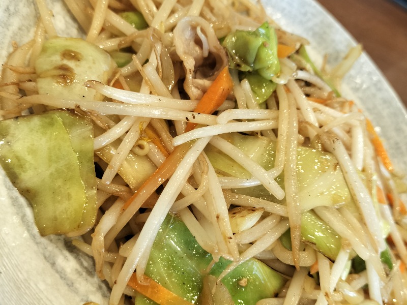 今日みたく少し肌寒い日は「湯船」にしっかり浸かり「塩サウナ」で。昼飯はヘルシーに「野菜炒め」と「トンテキ」