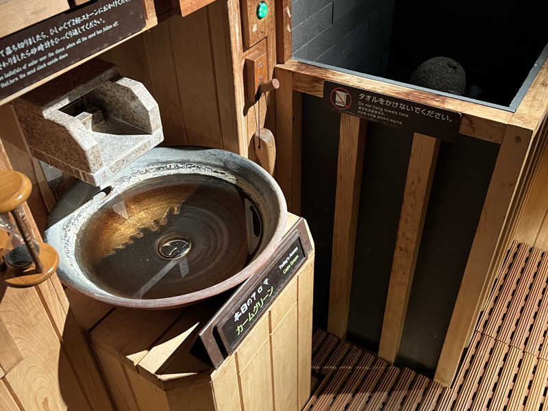 トップバッターをかざるオリエンタル2は、なんと言っても100℃超えのサウナが熱い!そして、水風呂は13℃で、サ室とのギャップがたまりません。浴室で椅子に座るのも良しですが、館内着を来てからの休憩スペースでのととのいもよかったです。