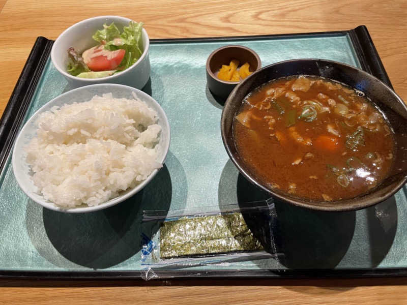 夜の外気浴最高!!!サ室はロウリュする前はじっくり蒸されてる感じだけど、ロウリュした後は一気に暑くなって良き!水風呂は大阪の末広温泉みたいな色と温度でずっと入ってられる好き水風呂!チャーシューも美味かったけどカレーも美味すぎた🤤