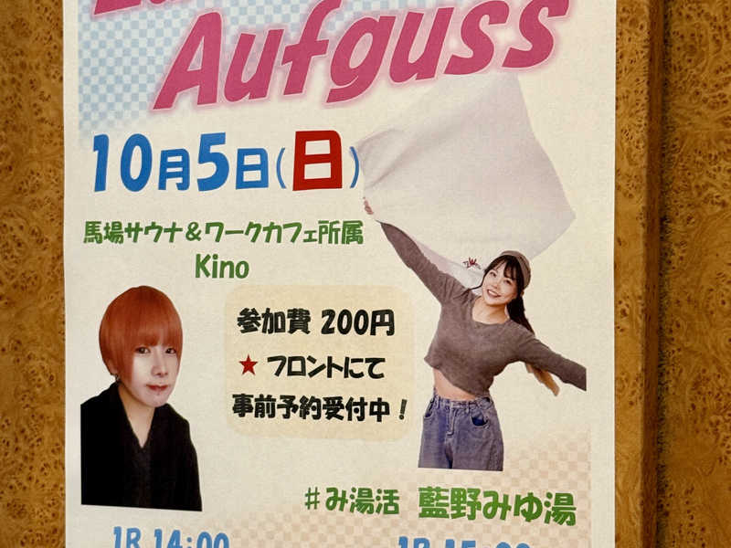 藍野みゆ湯さんというアウフグースマスターの女の子に熱波をいただきました!サ室でABBAの曲に合わせて前転する人を初めてみた笑